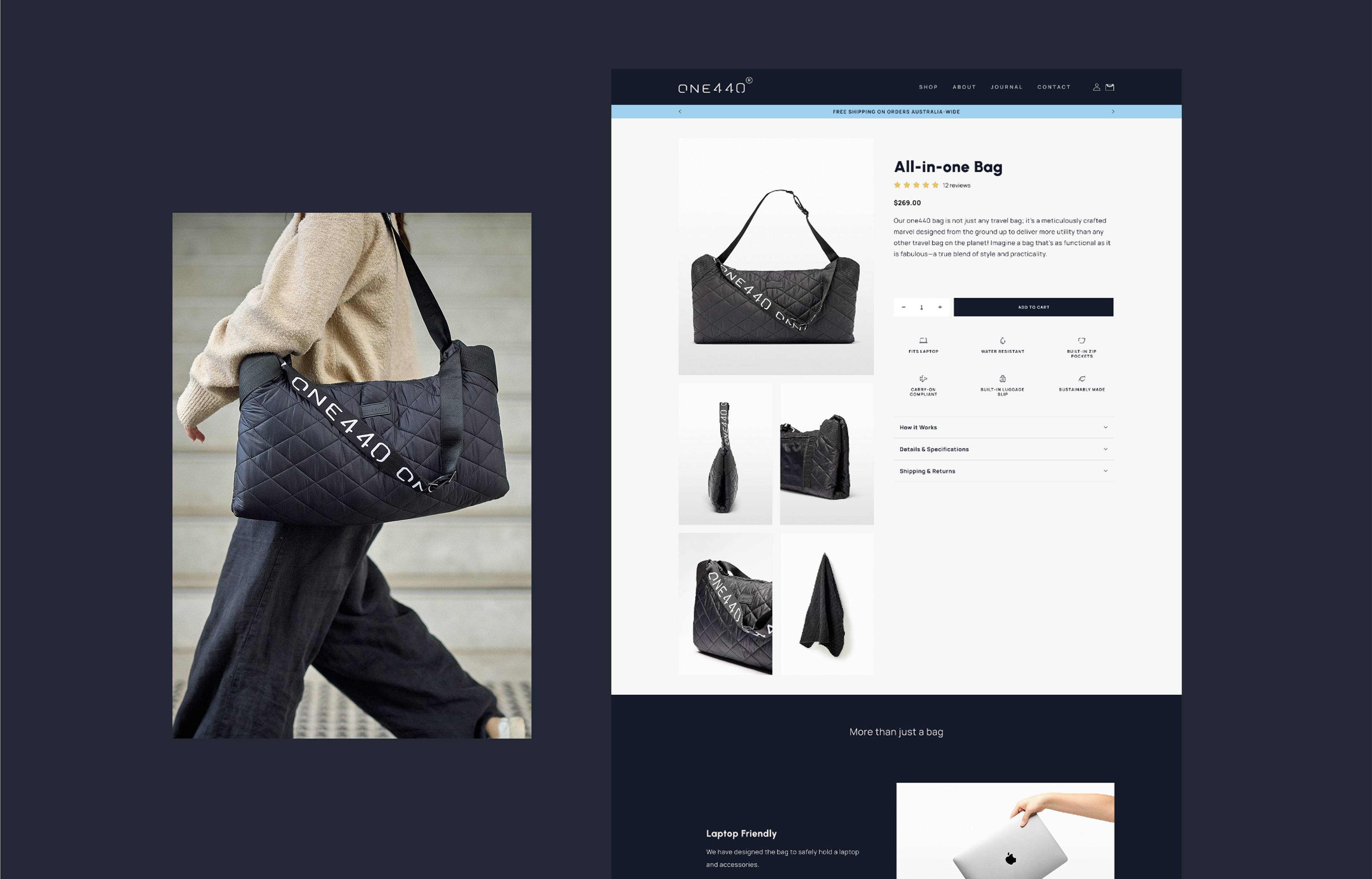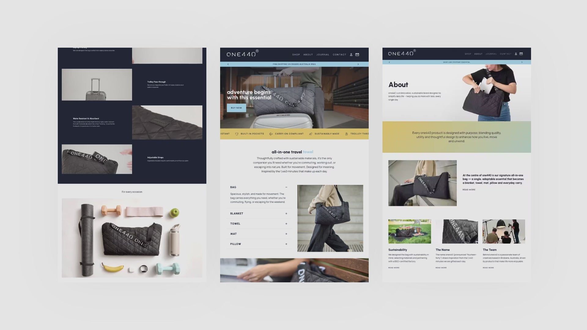 one440 (pronounced fourteen-forty) is a lifestyle brand inspired by the 1,440 minutes we’re gifted each day — a daily reminder to live fully and with purpose. At its core is our signature all-in-one bag: a thoughtfully designed essential that transforms into a blanket, towel, mat, pillow, and everyday carry.